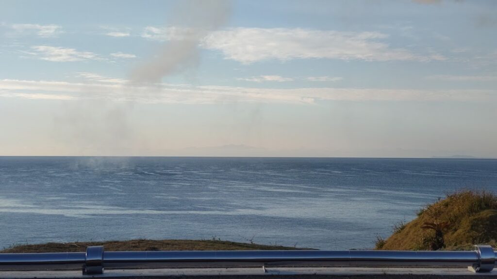 平日の昼間ということもあり。 観光客も ほとんどいないので、玉手箱温泉(ヘルシーランド)施設内を散歩してますと、屋久島がみえました。画像では 小さくてわかりにくいですが、水平線の上にうっすら見える陸地です。 施設のおじさん曰く「年に30日ぐらいしか見えない」そうです。 感動です!っていうか 他の島に比べ屋久島 巨大です!